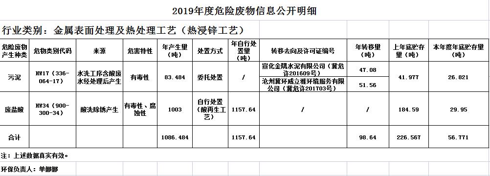 為了貫徹落實《河北省生態(tài)環(huán)境廳關(guān)于進(jìn)一步加強涉固險廢物企業(yè)信息公開的通知》和《中華人民共和國固體廢物污染環(huán)境防治法》第二章第二十九條規(guī)定,涉危企業(yè)應(yīng)當(dāng)依法及時公開環(huán)境污染防治信息、主動接受社會監(jiān)督,現(xiàn)將我公司2019年度危廢情況做如下公開: