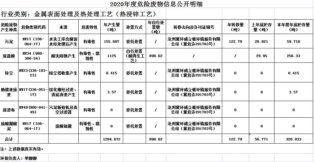 為了貫徹落實(shí)《河北省生態(tài)環(huán)境廳關(guān)于進(jìn)一步加強(qiáng)涉固險(xiǎn)廢物企業(yè)信息公開的通知》和《中華人民共和國固體廢物污染環(huán)境防治法》第二章第二十九條規(guī)定,涉危企業(yè)應(yīng)當(dāng)依法及時(shí)公開環(huán)境污染防治信息、主動(dòng)接受社會(huì)監(jiān)督,現(xiàn)將我公司2020年度危廢情況做如下公開: