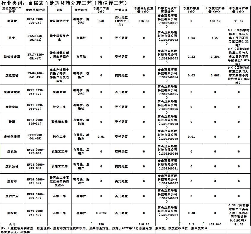 2023年(第四季度10-12月份)危險廢物信息公開明細