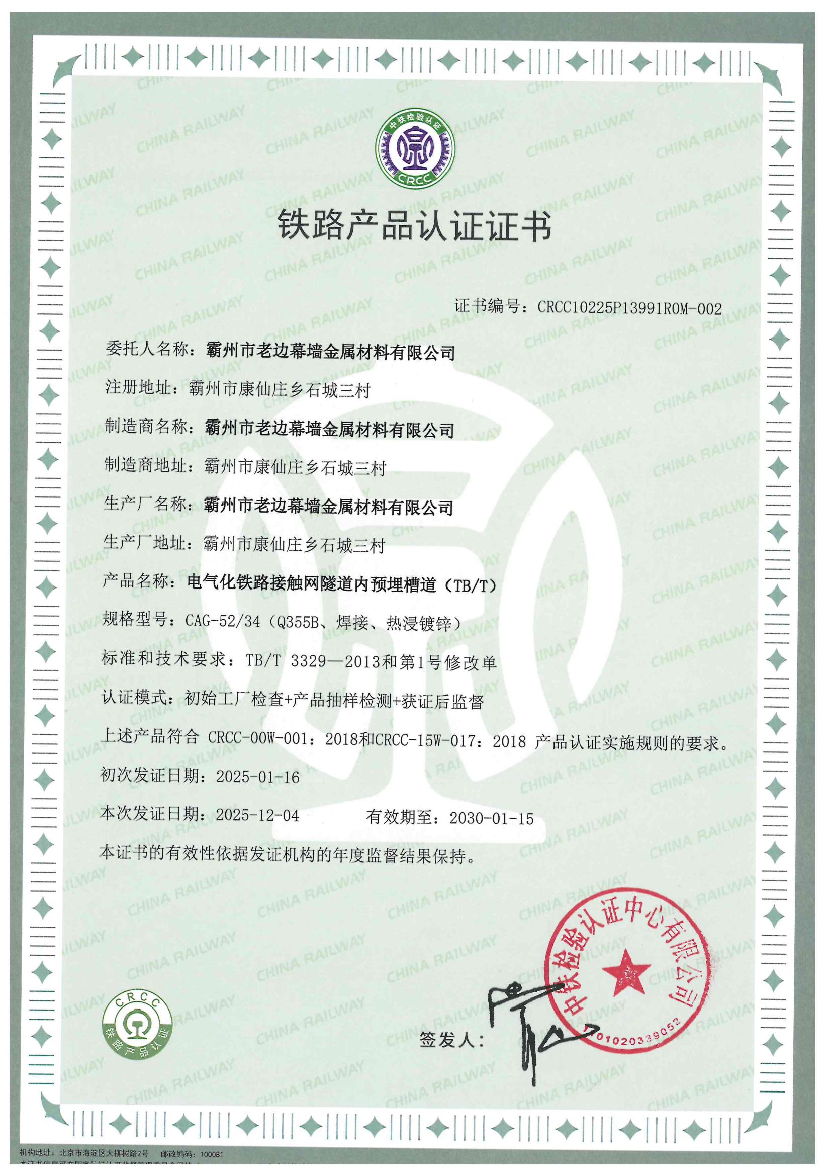 鐵路產(chǎn)品認(rèn)證證書02